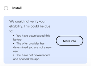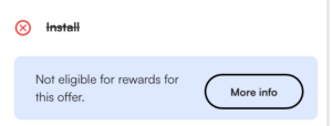 - If you are seeing this message, this means that you did not successfully check off the “install” goal for this offer and are not eligible for rewards. See the offer eligibility section for more information.