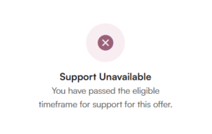 - Scroll to the very bottom of that offer. There will be a “Support” button that links to our support form.